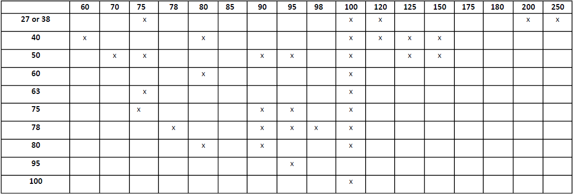 - 63 x 150, 63 x 160, 63 x 200